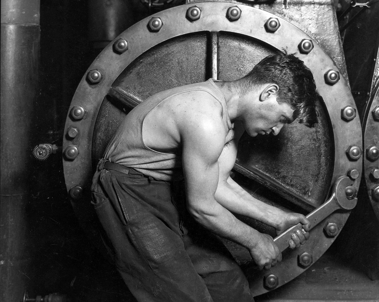 [ illustrazione: dettaglio da Power House Mechanic di Lewis Hine, 1920 ]
