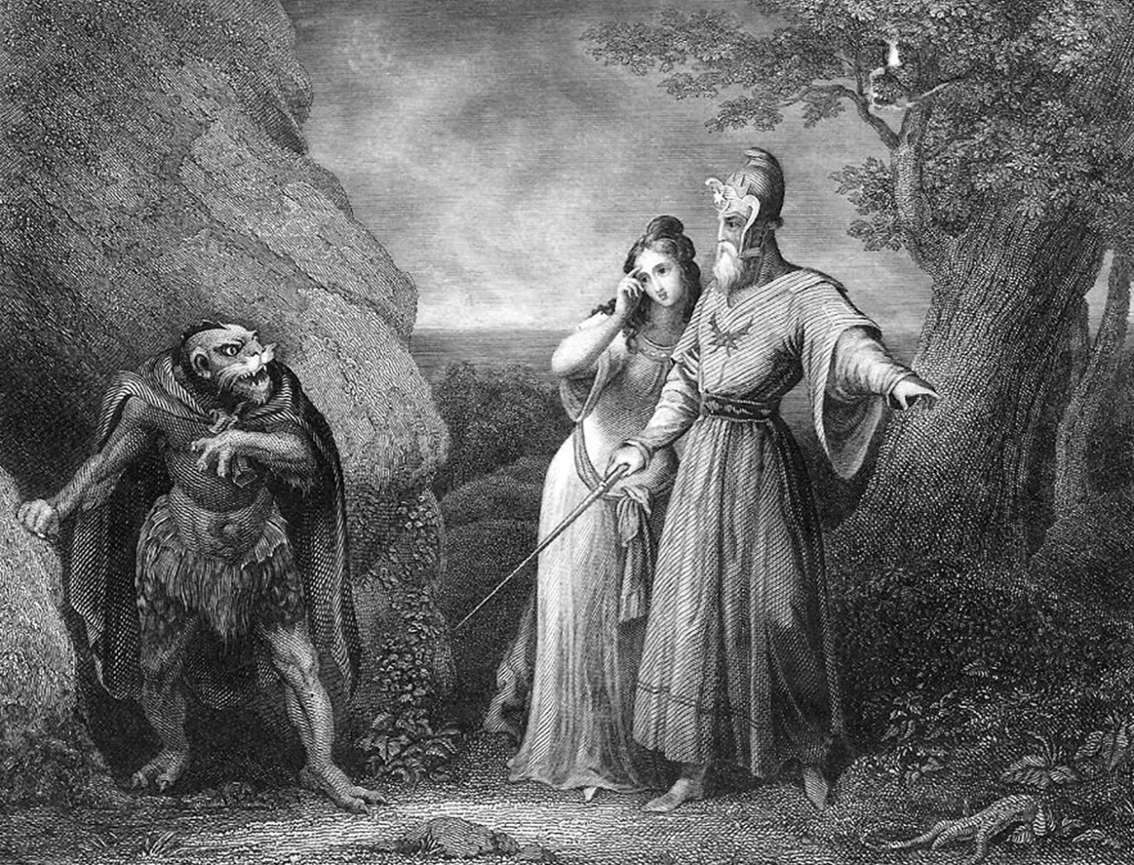 [ illustrazione: Caliban, Miranda, Prospero, C.W. Sharp, 1875 ]